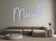 Font: Marshmallow Colour: Ocean Blue Size: Minimum / 33.83cm X 18.53cm / 13.32in X 7.3in Backboard: Cut To Shape Backboard Colour: Gold Mirror Waterproofing: true Any other special order notes: